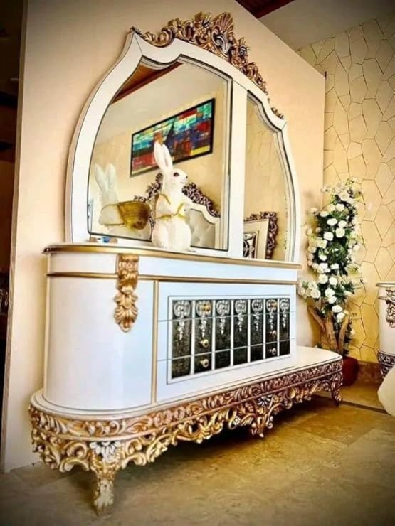 Muskan arts handicraft royal luxury premium bedroom set, a perfect blend of traditional craftsmanship and timeless elegance. Handcrafted by skilled artisans, this premium set includes a beautifully handcarved bed, a stylish bedside table, and a spacious dressing table all made from solid wood, ensuring durability and lasting charm. Ideal for both home bedrooms and luxury hotel interiors, each piece showcases intricate detailing, rich texture, and a smooth finish that enhances the ambiance of any room. Whether you're revamping your master suite or furnishing a guest room, this coordinated set adds a touch of royalty and sophistication to your décor.