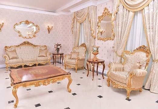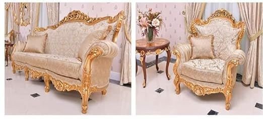• Muskan art solid teak wooden handcarved luxury 3 + 1 + 1 seater sofa set, exuding elegance and craftsmanship in a luxurious golden finish. Perfect for homes, hotels, and halls, this set includes a spacious 3-seater sofa, two cozy armchairs, two sofaside tables, and a striking center table. Each piece is meticulously handcrafted from premium teak wood, showcasing intricate carving details that elevate the ambiance of any room. Whether for lounging or entertaining, this set offers unparalleled comfort and style.