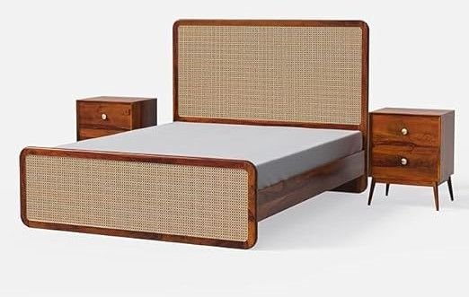 Ever had a bed that made you pause before climbing in? Not because it looked too good, but because it felt like a place worth being? That’s our Solid Wooden Rattan Queen Size Bed.